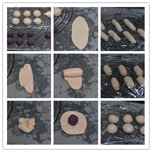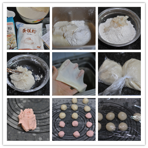 油酥:低筋面粉160克 豬油80克 粉色色素一滴