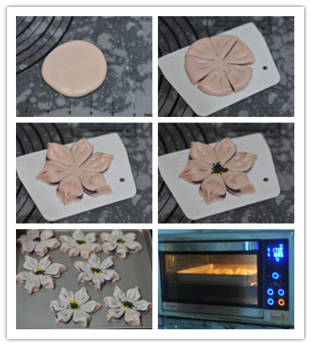 蛋黃液刷在花心,撒上黑芝麻裝飾
