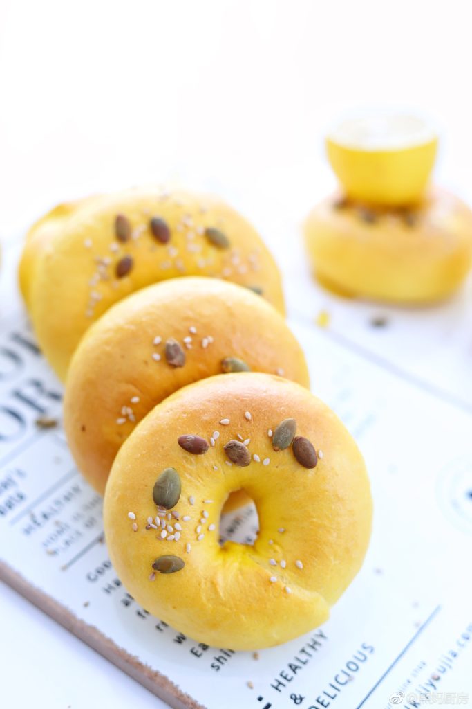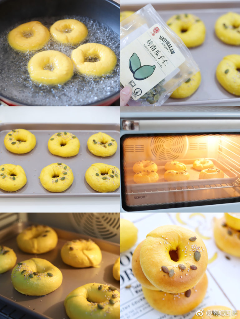 金燦燦胖嘟嘟的南瓜貝果,一次性發酵,新手也能輕松get
