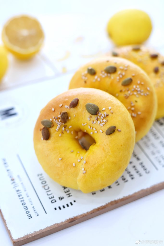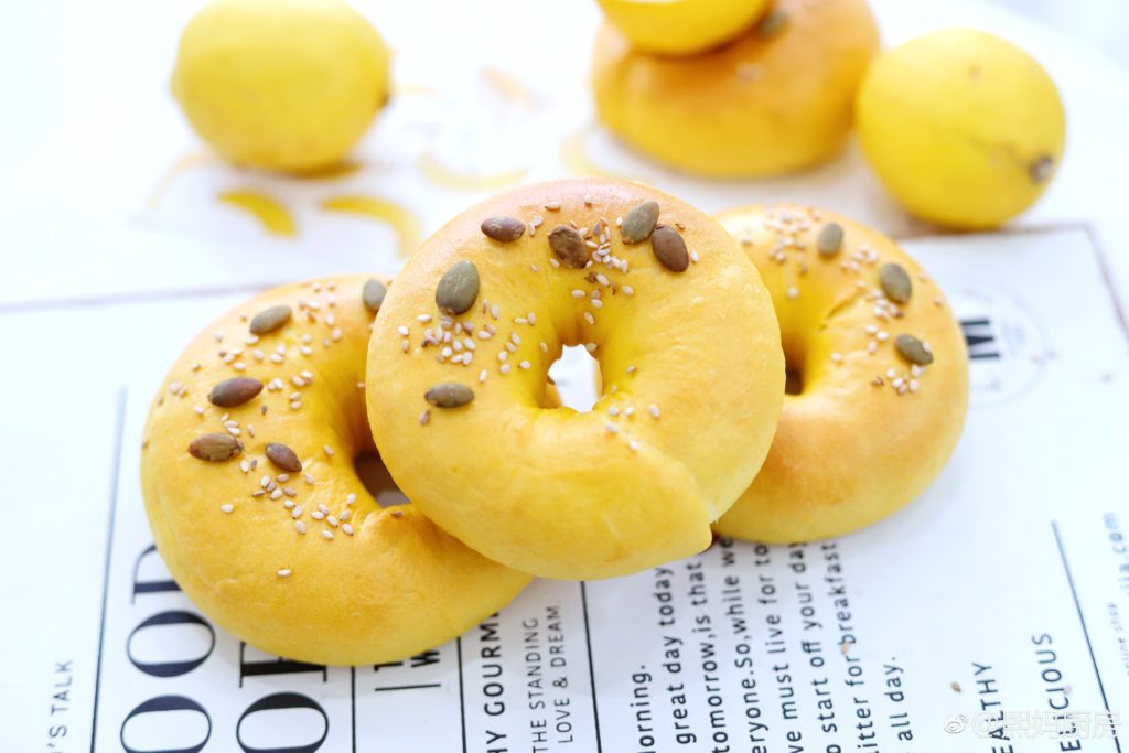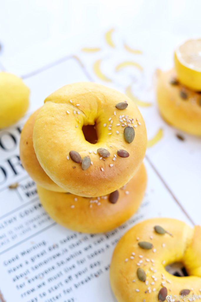 綿綿甜甜的南瓜,顔色也非常漂亮做成金燦燦胖嘟嘟的南瓜貝果一級棒柔軟的內部,自然的香氣面粉和南瓜的香氣是喚醒早晨的仙氣是你最好的早餐好朋友。