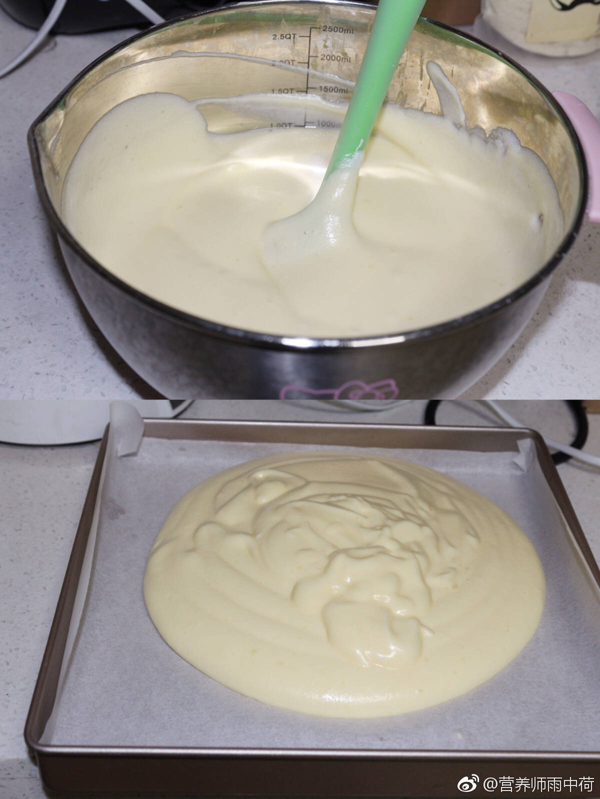 1、家用面粉35克 玉米澱粉5克 水40克 油40克 糖40 白醋2滴