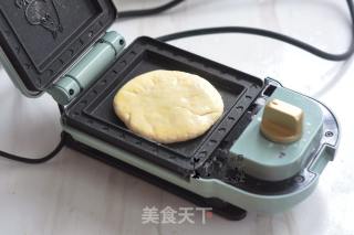 6、將刷了蛋液的一面朝下,放入輕食機內,沒刷蛋液的一面,再刷一層蛋液,蓋上蓋子加熱7分鍾。