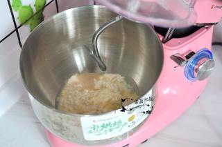 1、將面粉倒入廚師機內膽中,加入酵母,倒入溫水。