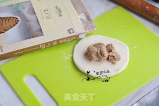 4、取一個面團,擀成薄片,放上天然之林的栗子餡。