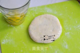 5、像包包子一樣,把餡包起來,封口壓扁,表面刷一層蛋液。