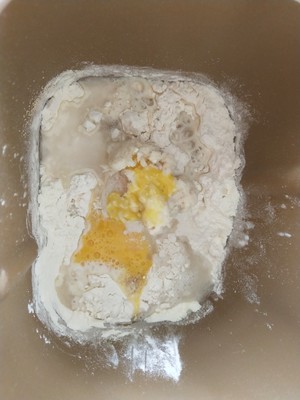 3、將除黃油外所有面團材料放入面包機揉面。