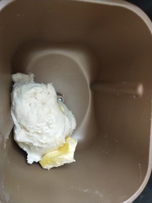 4、揉成團後加入軟化的黃油繼續揉。
