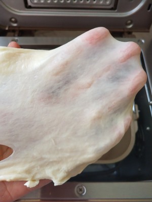 主面團: 高筋面粉 181克、 低筋面粉 50克、奶粉 10克、細砂糖 30克、幹酵母 3克、鹽 3克、湯種 38克、黃油 25克、水 116克
