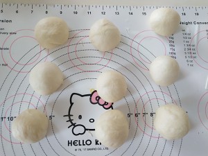 7、分割成9個小面團,滾圓蓋保鮮膜松弛15分鍾。