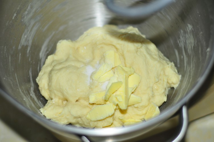 2、加入鹽和黃油揉至完全。