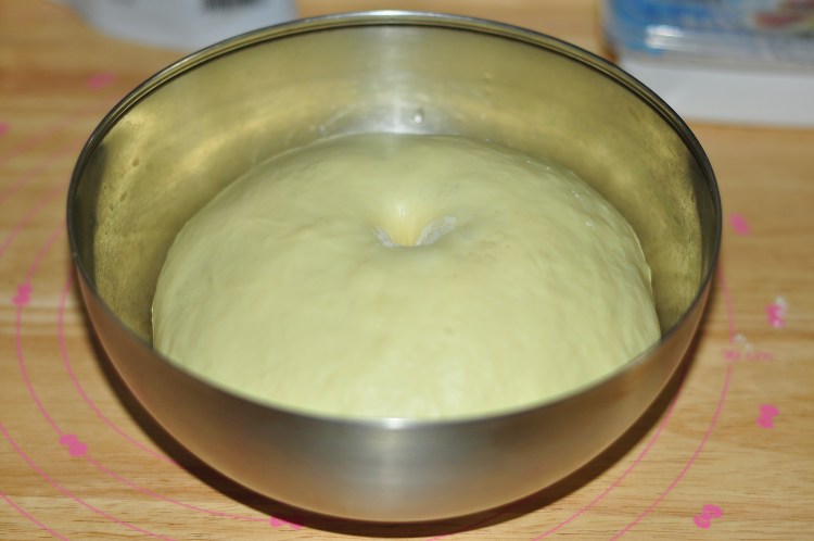 4、發好粘面粉按下去不會馬上回縮就發酵好了。