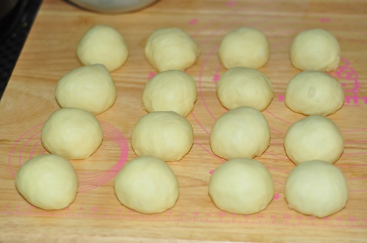 5、取出平均粉成十六份,滾圓蓋上保鮮膜醒十五分鍾。