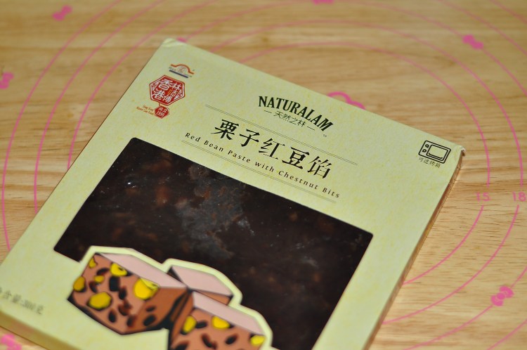 6、將紅豆栗子餡取出,我用的天然之林的餡,不甜,很香。