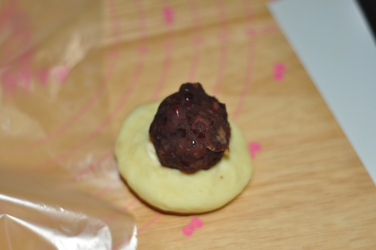 9、再放入栗子紅豆餡。