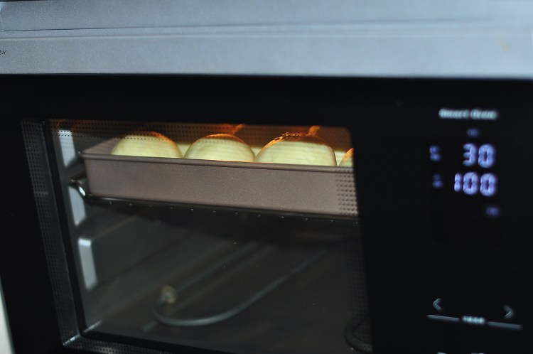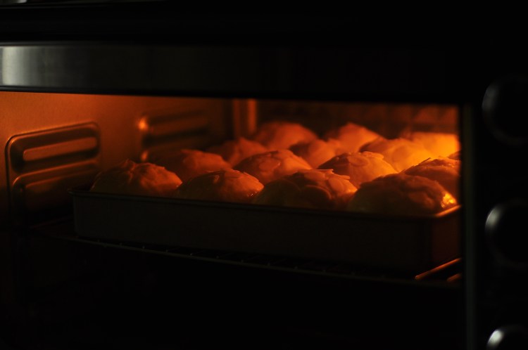 10、收口朝下擺放在28*28的不粘烤盤中。