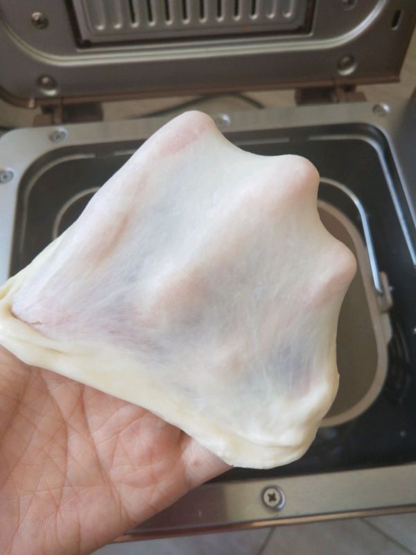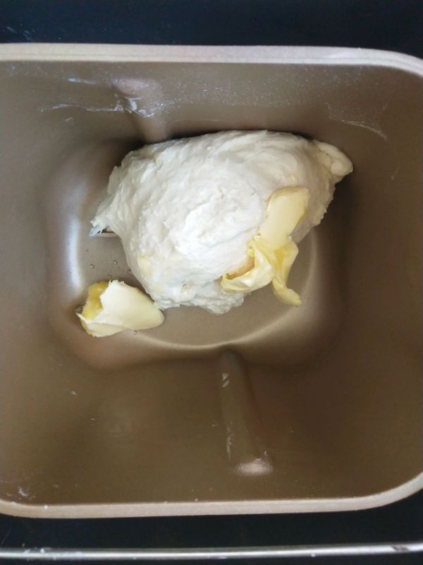 2、除黃油和栗子餡外所有材料放入面包機揉面。