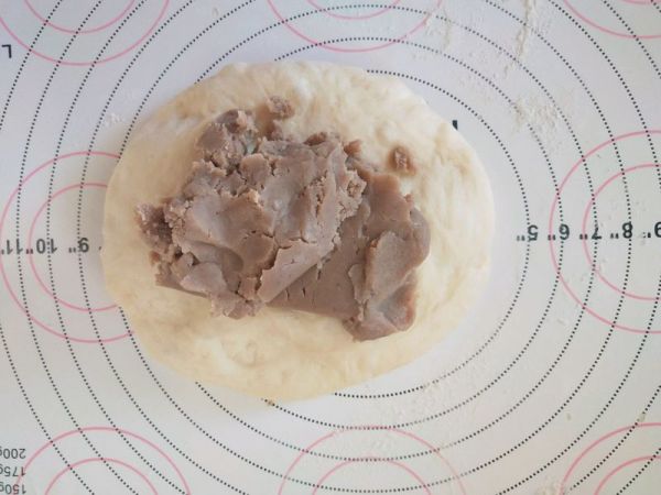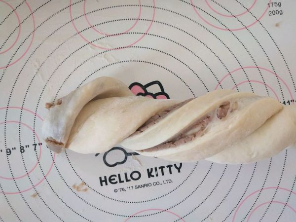 高筋面粉250g、低筋面粉 50g、酵母粉3g、鹽3g、細沙糖40g、奶粉10g 、全蛋液25g、水135g、黃油25g、天然之林栗子餡150g