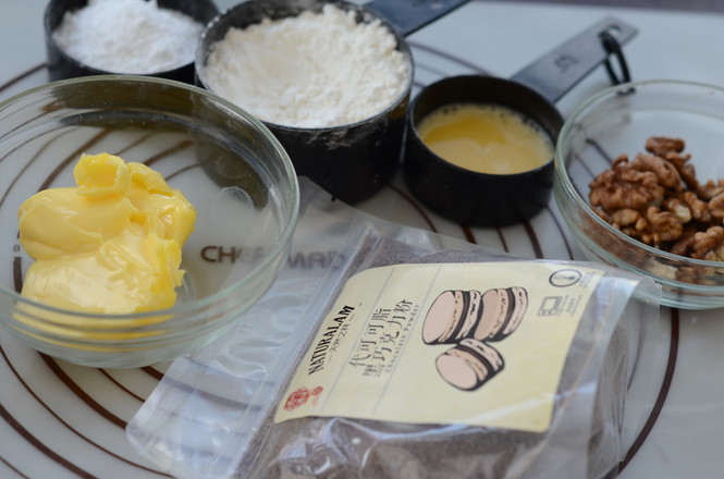 黃油70克、糖粉50克、蛋液25克、核桃仁45克