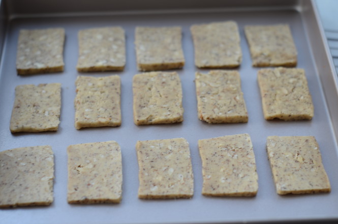 7、將凍硬的面團切成大約0.6厘米厚的餅幹坯