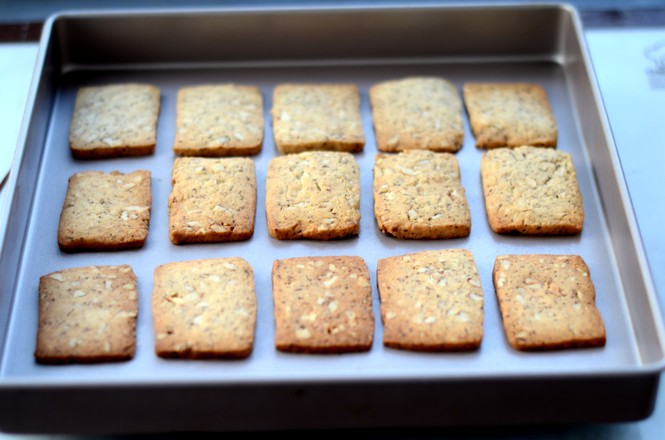 8、餅幹坯擺入烤盤,烤箱預熱175°,中層上下火烤15分鍾。餅幹烤至邊緣微黃即可