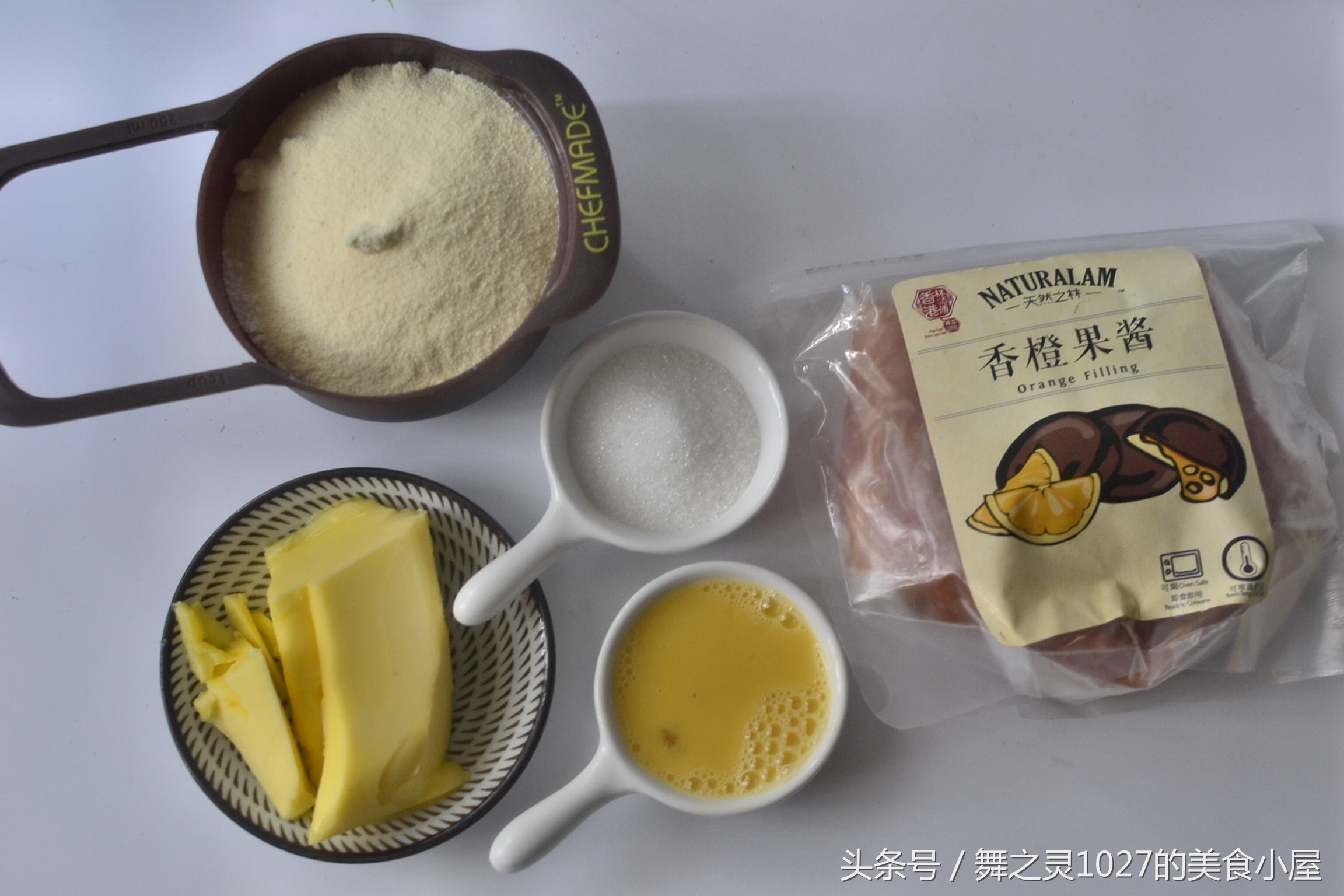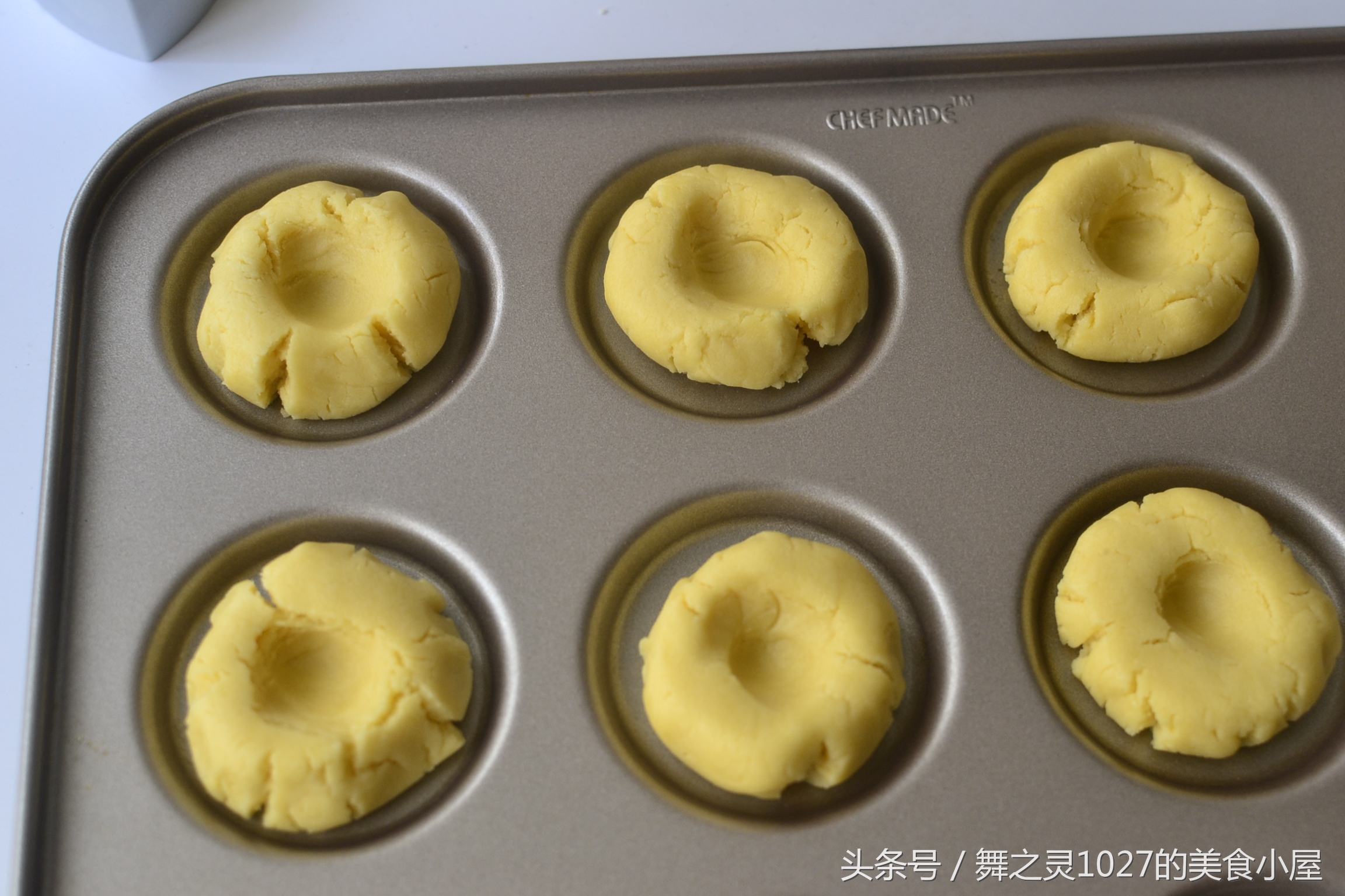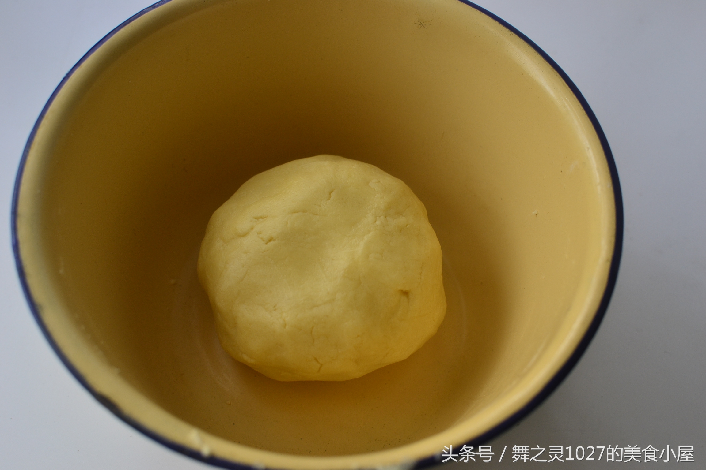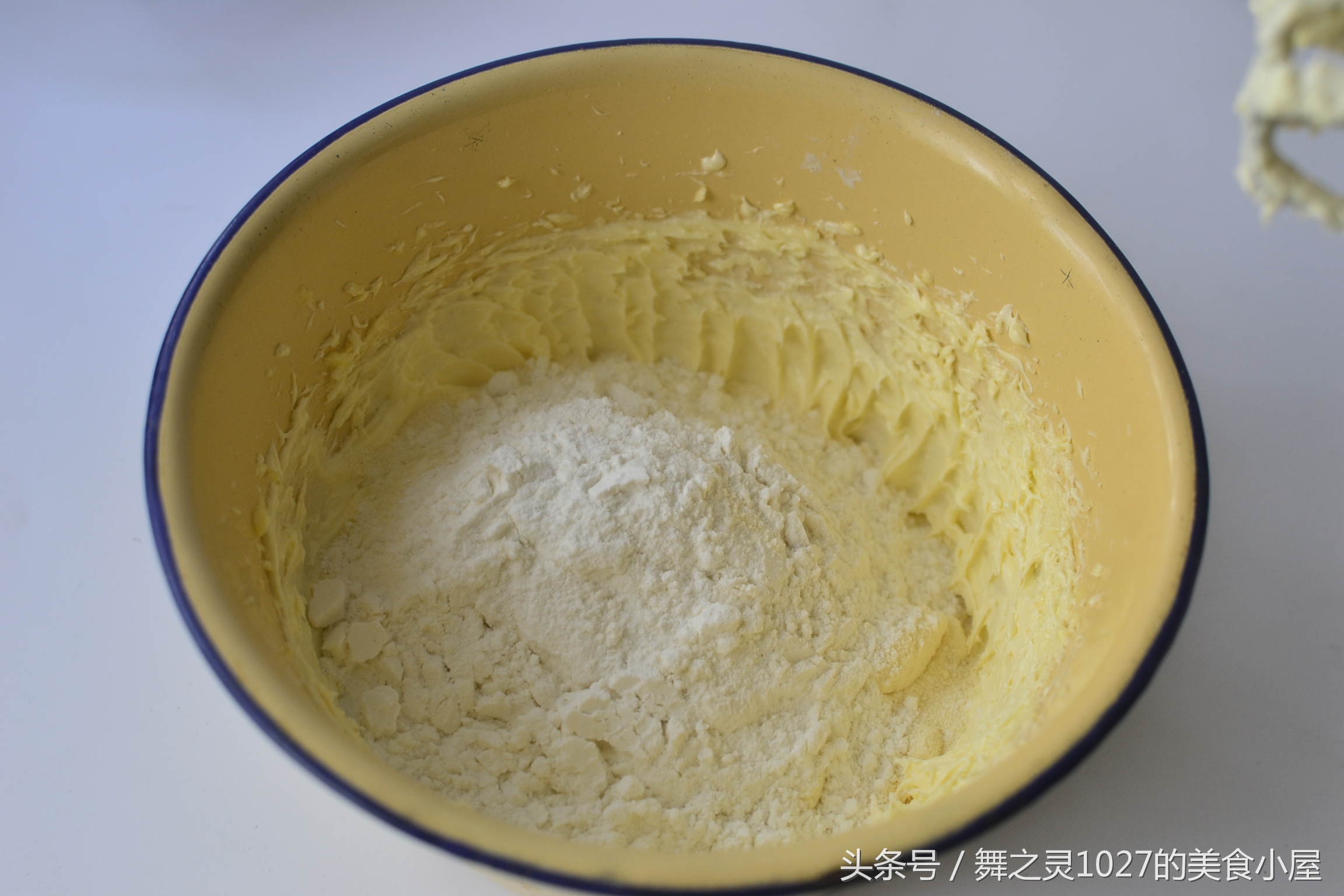 材料:低筋面粉70克 黃油60克 糖粉15克 奶粉35克 蛋液22克 鹽少許