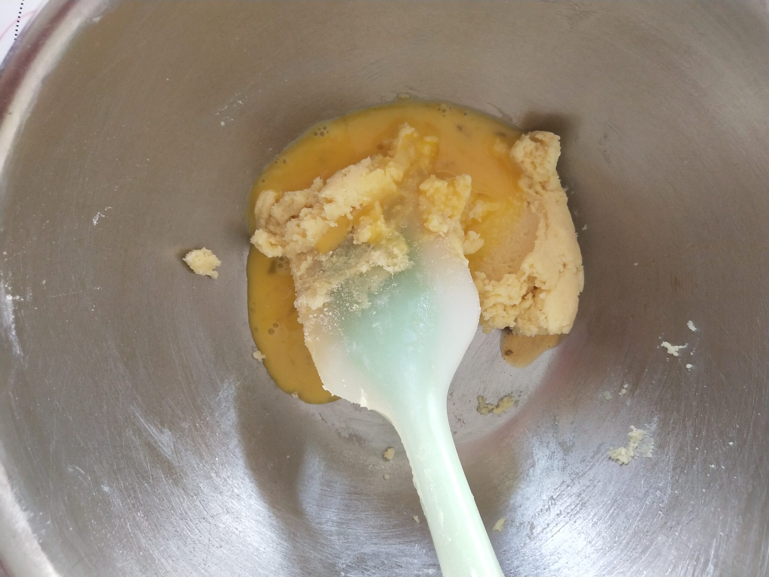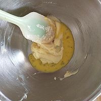8、杏仁粉、低筋面粉翻拌均勻,加入1個雞蛋攪拌均勻。