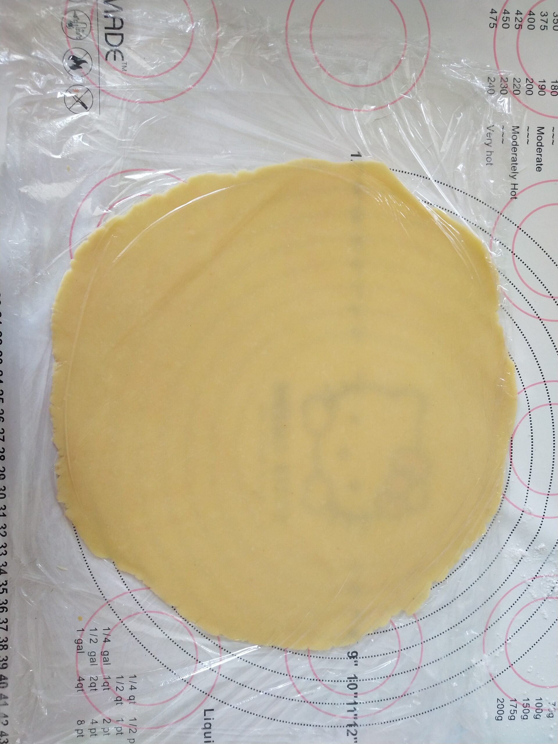 12、能放到學廚6寸派盤裏,壓好形狀取出多余的餅皮