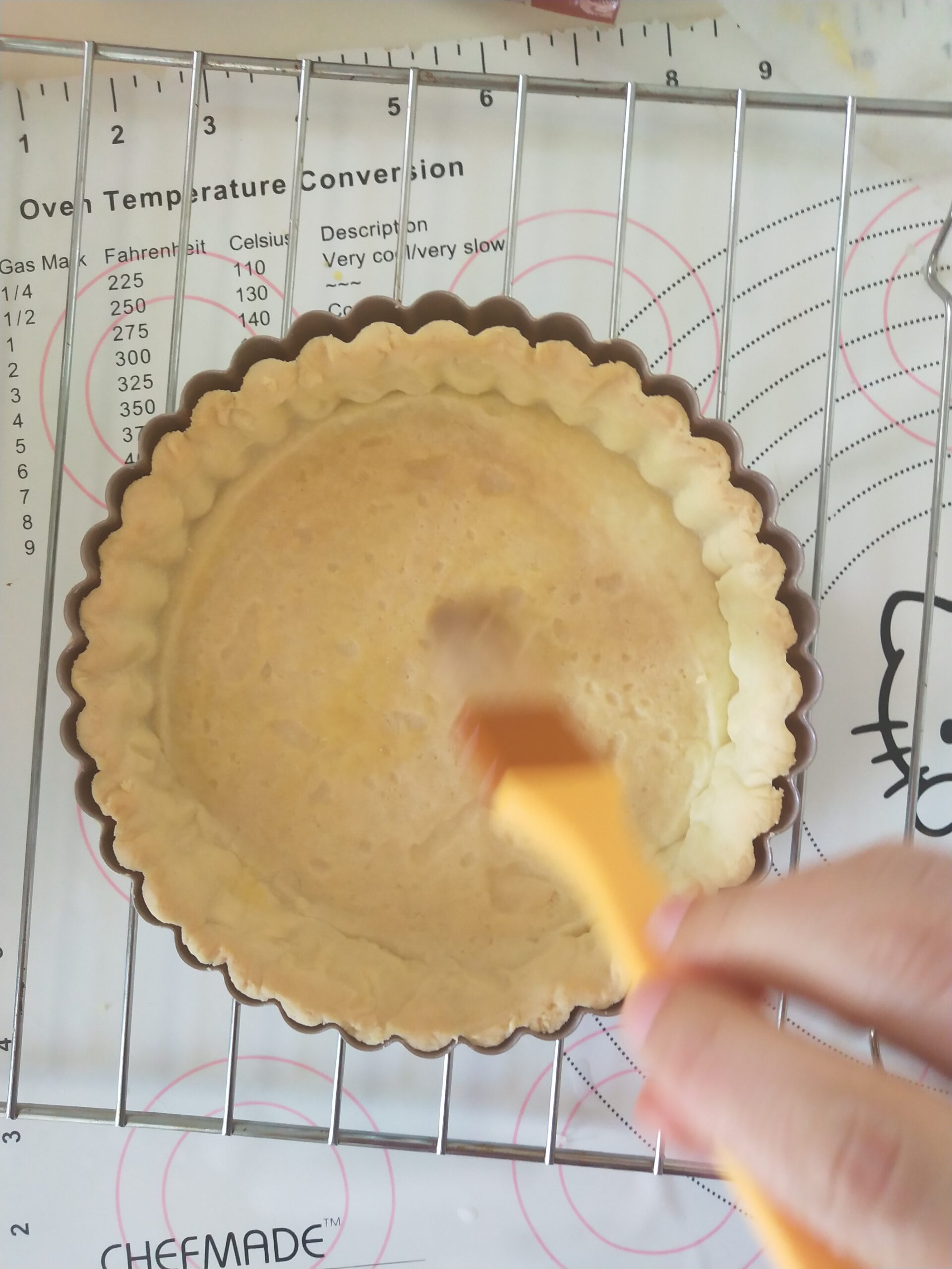18、趁熱均勻的平鋪在派上。烤箱中層180度8-10分鍾