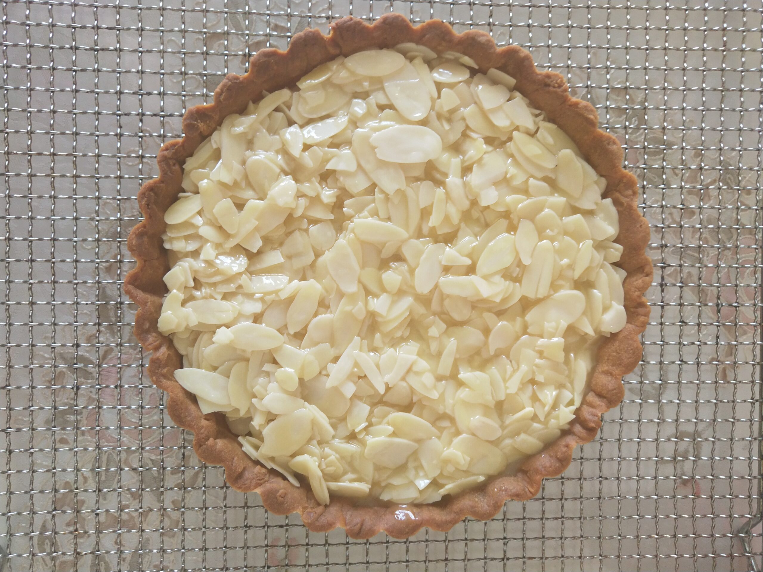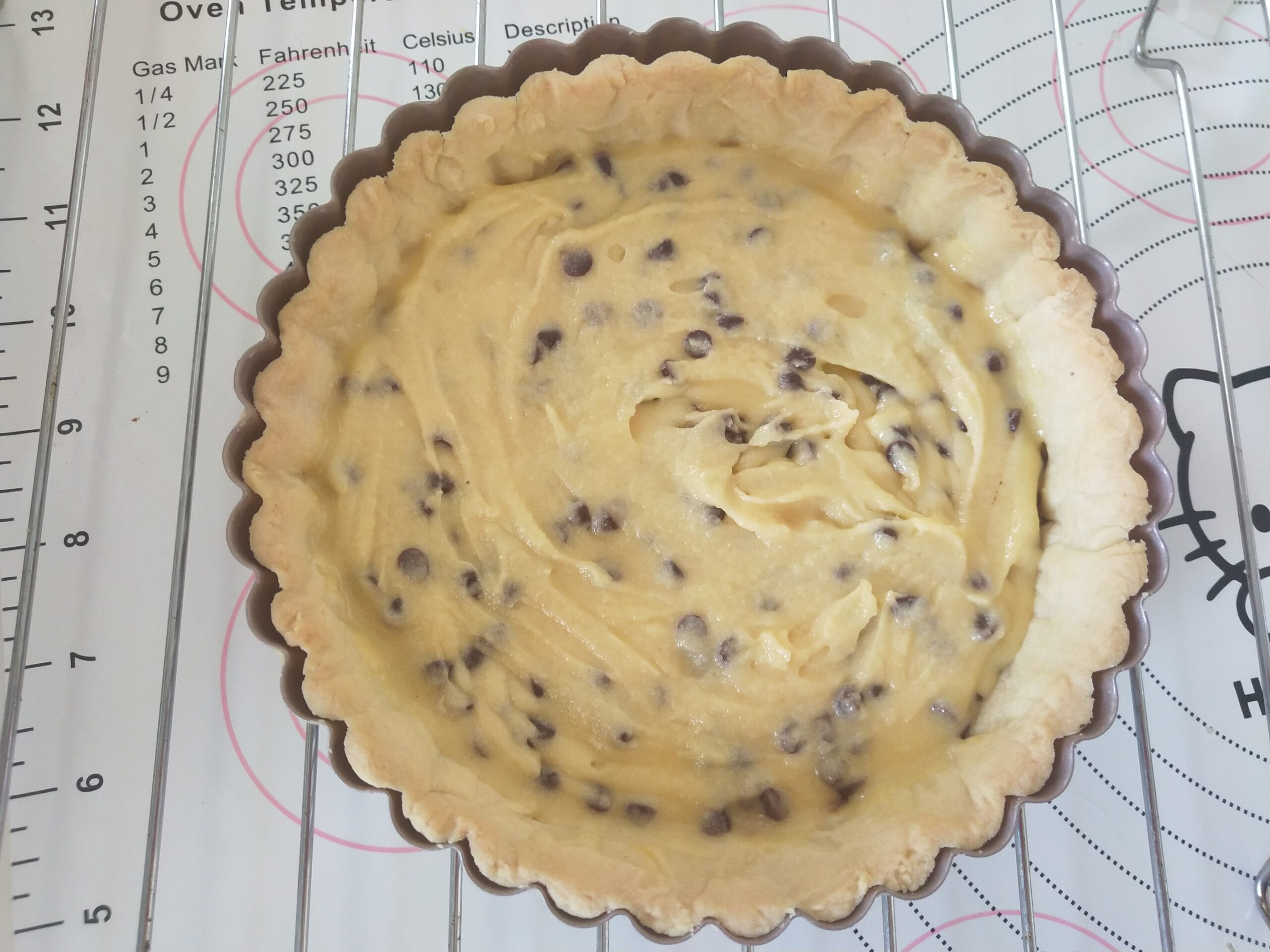 15、將巧克力杏仁餡放進之前烤好的派餅裏,165度25分鍾,升溫到170度5分鍾上色。然後去取出備用。