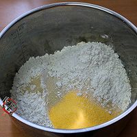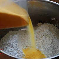1. 面粉、糯米粉、玉米面分別倒入大盆中