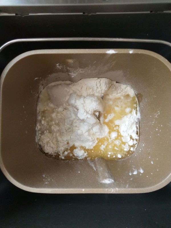 3、所有油皮材料放入面包機揉面。