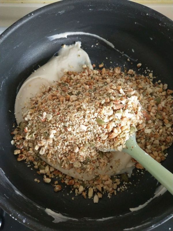 12、加入切碎的4中堅果。揉成團保鮮膜包好備用。