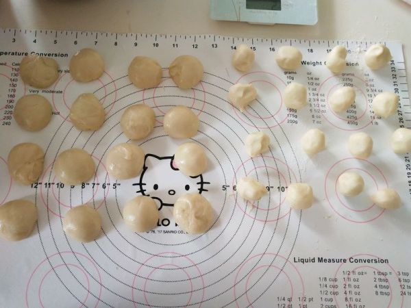 16、五仁餡分成25克的小球,16個。