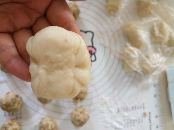 4、油皮材料用手揉成團。