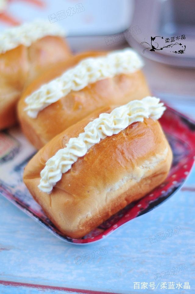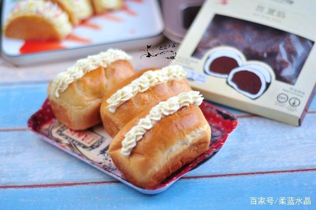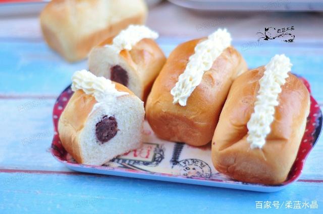 家裏的小朋友一向喜歡吃面包、蛋糕這些食物,不用說孩子喜歡,連我們大人也是很喜歡吃的,隔幾天不吃還饞得慌。【…】 其實,面包和蛋糕在家也能自己做,而且成本也很低,關鍵是健康啊,沒有添加劑和香精,孩子多吃點也沒關系。不要把面包想得有多難做,有個最簡單的竅門,其實這就是一塊加了糖的發面團,只要會做饅頭包子,面包也差不到哪去。 特別提醒: (1) 做的時候要按著配方來,自己在不熟練的情況下,不要隨意改動。 (2) 液體不要一下子全部倒完,先剩下下10克,面團幹濕正好,就不要加了,面團偏幹再倒入,這樣可以保證揉出來的面包不粘也不幹。 (3) 後面只要掌握好發酵時間,不要發太久,問題就不大了。 (4) 最後烘烤溫度不要過高,時間也不要太長,最後幾分鍾守在烤箱前,面包就不會糊。 (5) 想要面包好吃,那料也一定要足,在整形時加些紅豆餡,最後出爐涼後,表面再加上淡奶油,餡是現成的,包進去就好,淡奶油使用的是健康的動物性淡奶油,這面包吃起來才十分香甜可口,用8連迷你模具來做,做出來的面包非常可愛,孩子拿著吃也很方便。【…】 配料:雞蛋50g 糖20g 鹽2g 牛奶110g 高粉250g 幹酵母4g 黃油25g 紅豆餡200g 表面裝飾:淡奶油60g 糖6g 1.將雞蛋、牛奶、糖、鹽放入廚師機內膽中。倒入高粉,最上面放幹酵母。 2.將面揉成團後,加入黃油,繼續揉至光滑。發酵40分鍾左右,手指按下不回縮。 3.取出發酵好的面團,排氣後分割成8份,滾圓松弛10分鍾。 4.取一個面團擀開,放上紅豆餡。由上至下卷起,邊卷邊將兩邊收口,將底部捏緊。 5.依次將面團操作,全部放入12連迷你長方形模具中。 6.放入烤箱中,烤盤下面放一碗開水,發酵40分鍾左右,體積變大取出,表面隨意割些口子做裝飾,不要劃太深。放入烤箱中層,160度烘烤25分鍾。 7.面包放涼後,頂部割開口子。淡奶油加糖打發,裝入32#花嘴,在面包割開的口子上,擠上奶油。 注意: 1.擀面的時候回縮,可以擀一會,松弛幾分鍾。 2.如果室溫比較低,適當開一會發酵功能。 3.烘烤的時候不要離烤箱太遠,隨時觀察上色情況,上色深時要及時出爐。