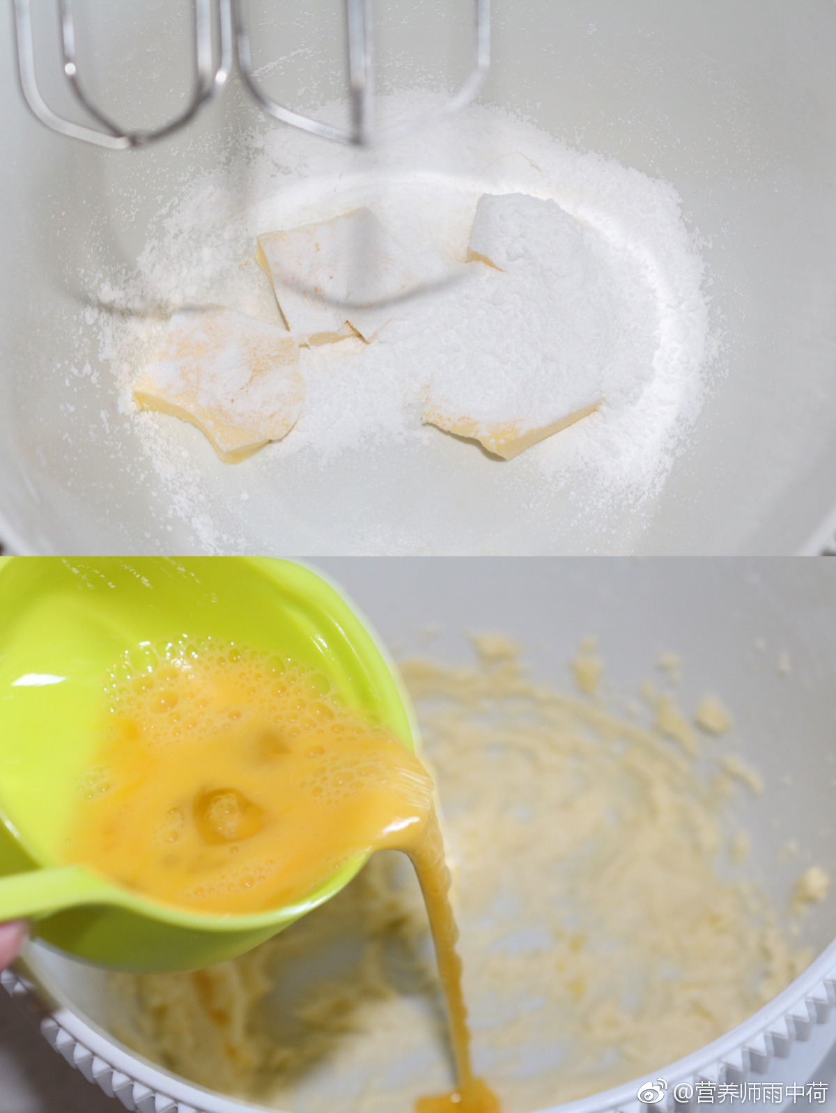 1、黃油切小塊軟化後篩入糖粉攪拌均勻;