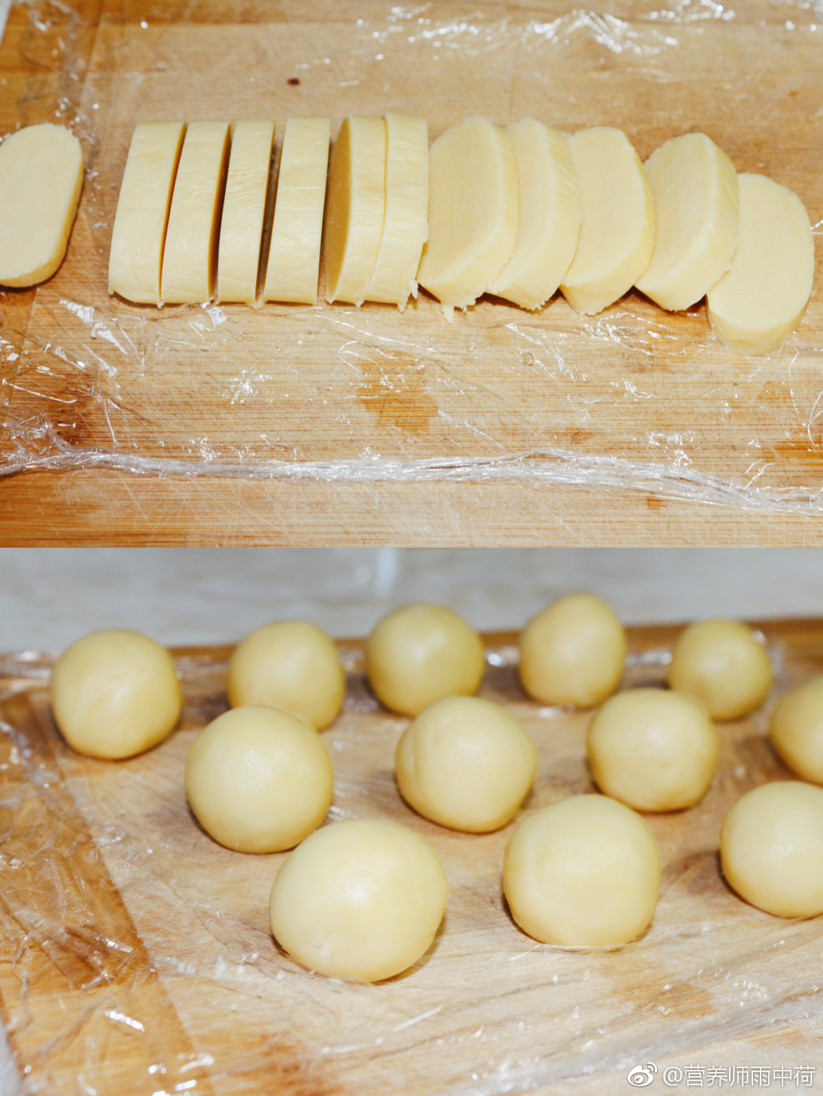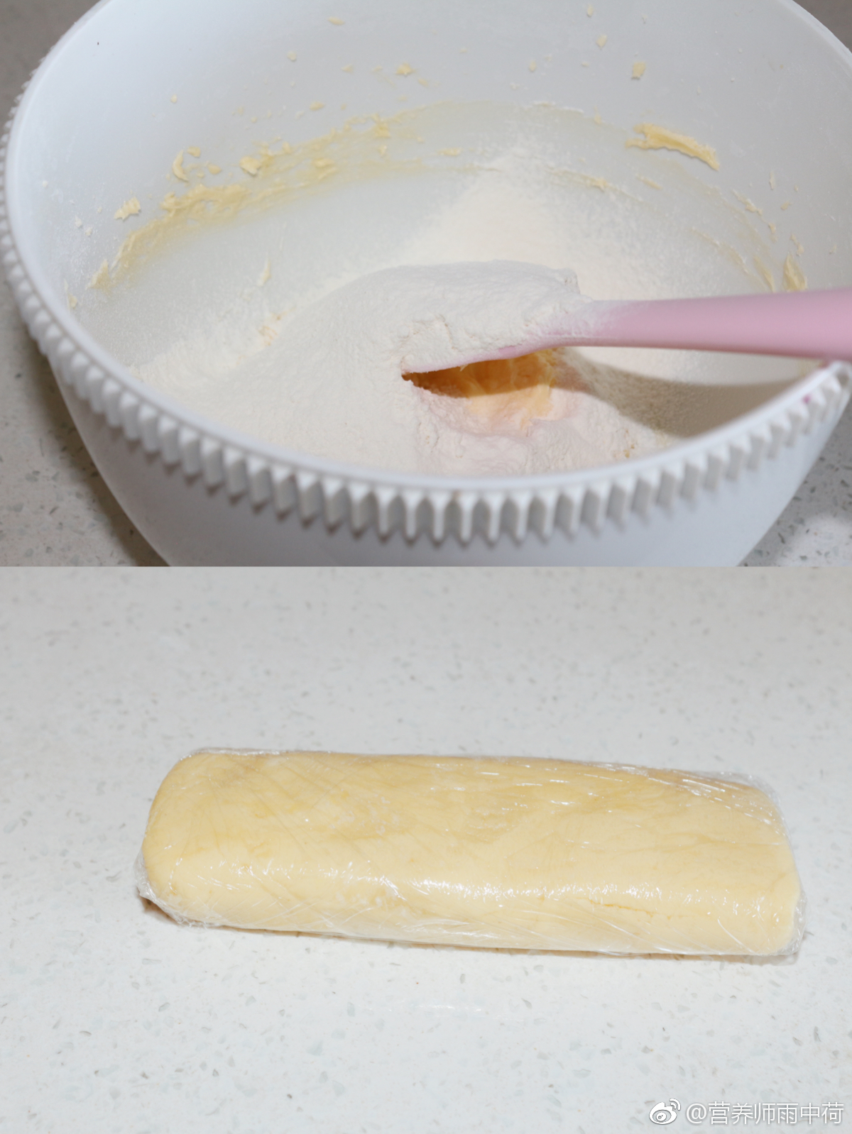 6、將面團放入保鮮膜內整形好後放冰箱冷藏1小時左右;