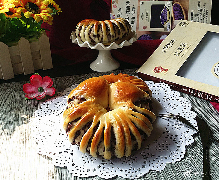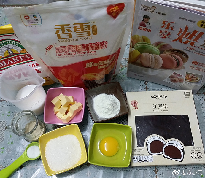 150克、低筋面粉60克、高筋面粉240克、紅豆沙300克