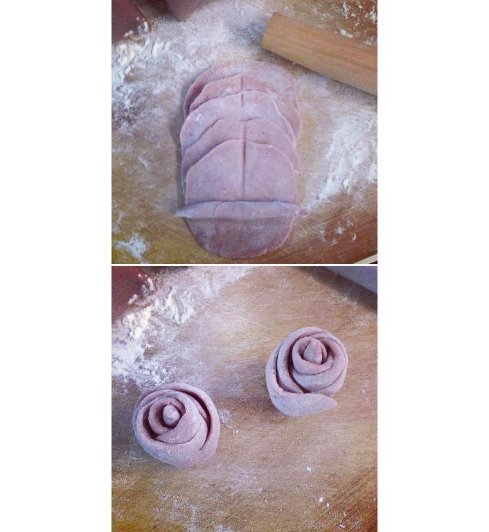 揪團擀皮,然後可以作不同花式,例如玫瑰卷。