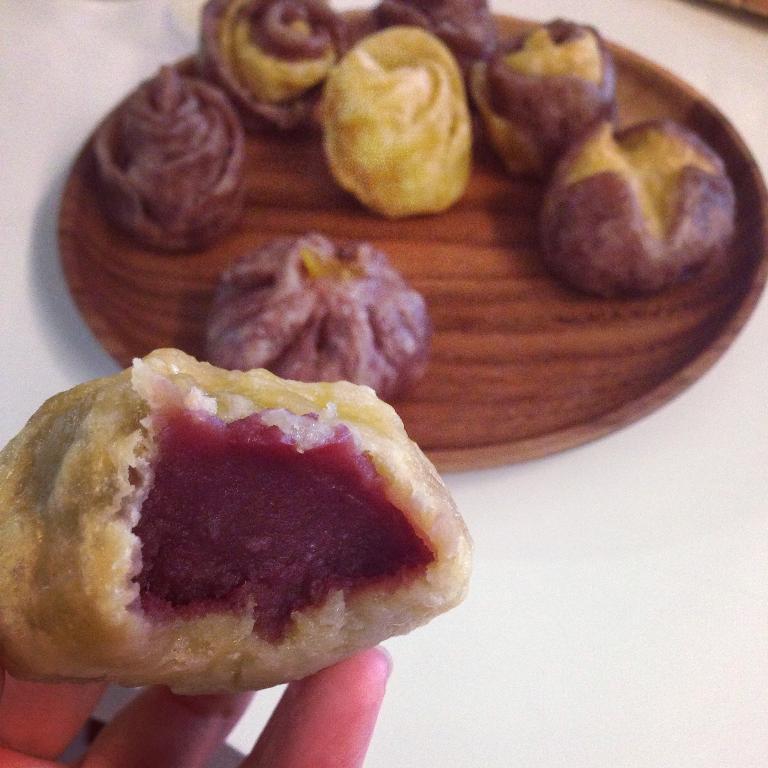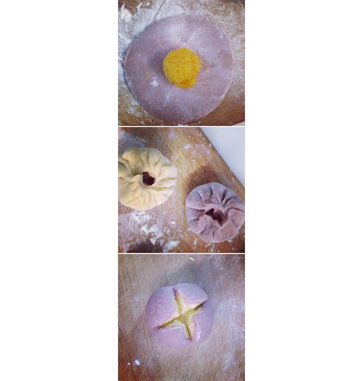 也可以用南瓜蓉或紫薯蓉來作餡料,味道更濃郁,顏色也更靚。