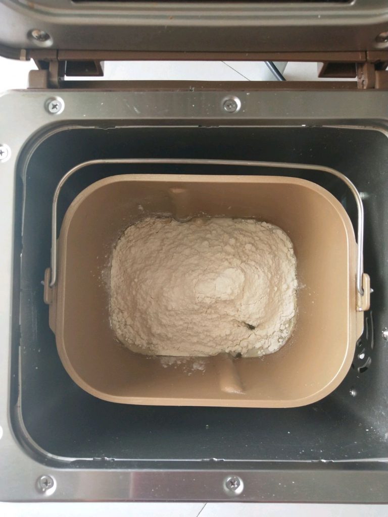 2、面團材料除黃油外所有材料放入面包機揉面。