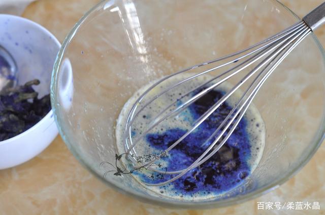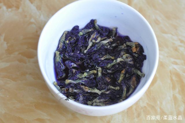 1.蝶豆花裏加入水浸泡10分鍾。