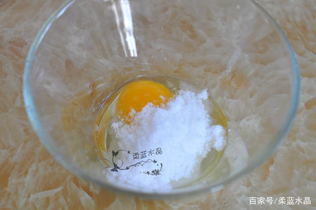 2.雞蛋裏加入糖打散。