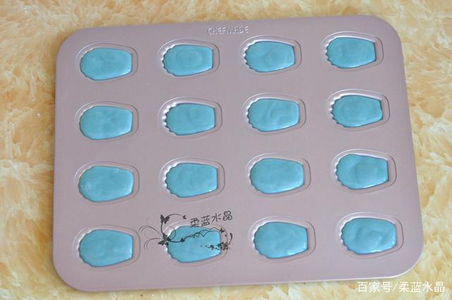 7.攪勻後放冰箱冷藏一小時。取出面糊裝入裱花袋中,擠入16連瑪德琳模具,160度烘烤15分鍾。