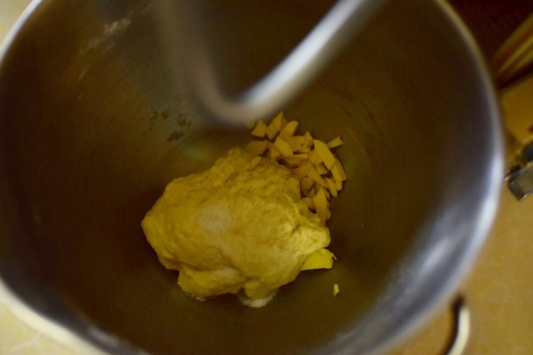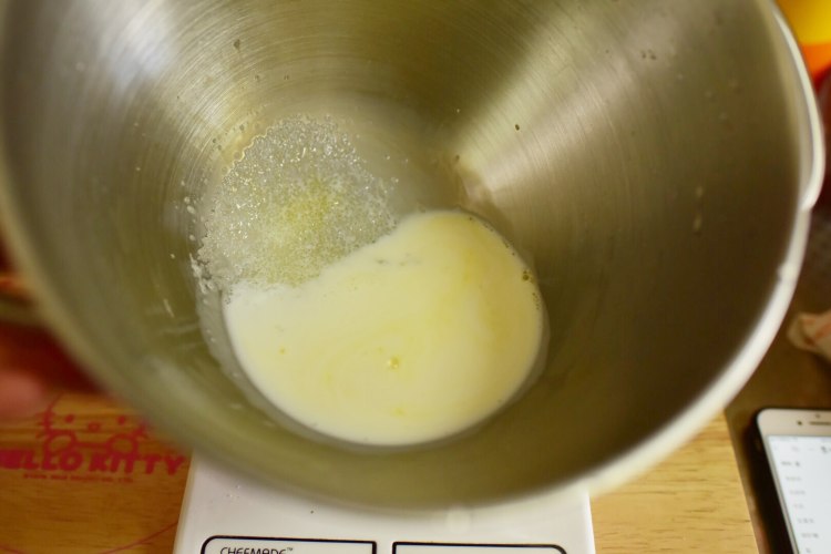1、先將牛奶、蛋液、糖放入廚師機裏。