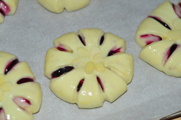 輔料:天然之林藍莓果醬適量、表面蛋液適量杏仁片適量