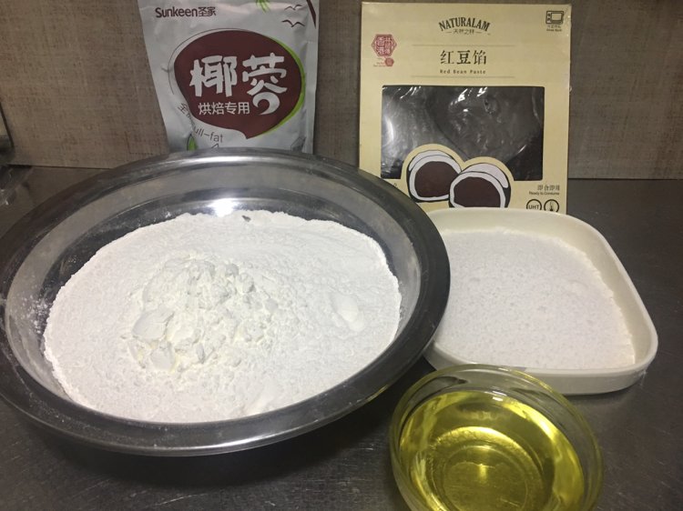 主料:水磨糯米粉300克、澱粉50克、紅豆餡2袋