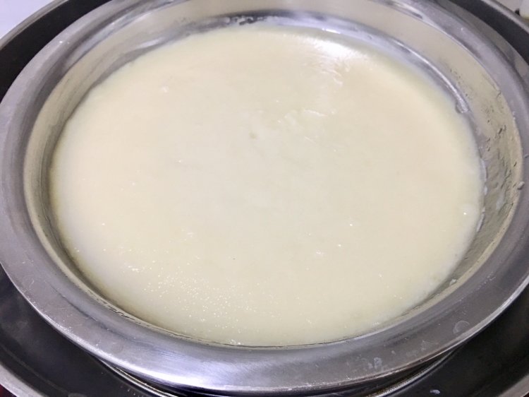 5、蒸熟後面糊凝固,放置溫熱備用。