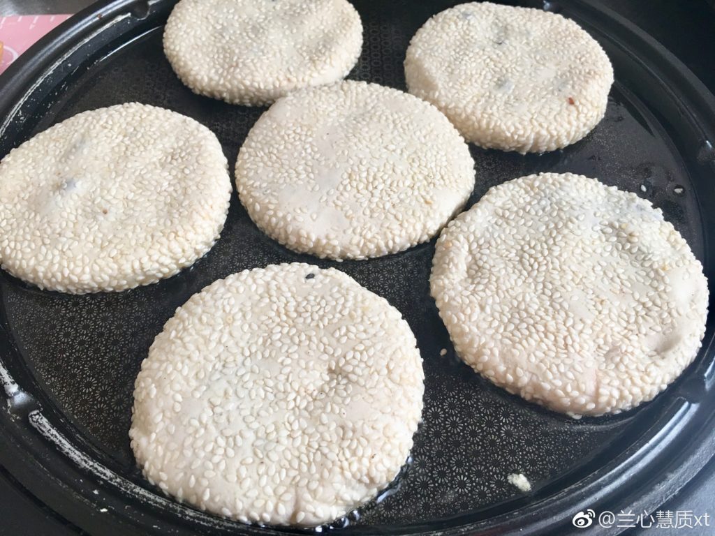 6.電餅铛預熱加油,放入豆沙餅煎至兩面金黃色即可
