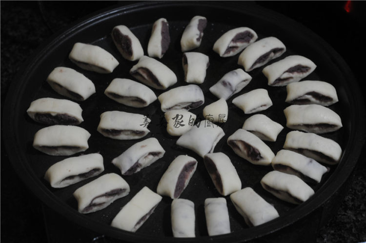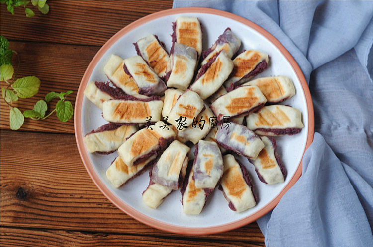 不加黃油、不用二發,一個煎鍋搞定小巧面包卷,一口一個香甜蓬松 食材主料: 面粉150克、水96克、酵母3克、糖6克、鹽2克 輔料:紫薯餡料一包 做法步驟: 1.食材都准備好,紫薯餡我用的是天然之林的成品,無添加,口感細膩。 2.主料裏所有的食材都放入除濕機了,揉成光滑的面團,蓋上保鮮膜,放在溫暖的地方二發至兩倍大。 3.發酵好的面團放在撒了幹粉的面包上,充分搓揉排氣,將排氣好的面團擀成長方形薄片。 4.紫薯餡搓揉成跟面片差不多長的條狀,放在面片中間,包過程圓形長條。 5.收口捏緊後將面條慢慢揉成長條,越細越好,揉的時候要稍微小心點,別將面條扯斷了。 6.用刮刀將面條切成一厘米左右的劑子,切口如果外翻比較嚴重,可以用手稍微整理下。 7.電餅铛刷油,將切好的劑子擺在餅铛中間。 8.蓋上蓋,大約煎5、6分鍾,小面包就煎熟了,外焦裏嫩,綿軟清甜,比烤饅頭可簡單多啦,一口一個,小朋友特別喜歡呢,不妨收藏試試。 小貼士 1、這個面包方子沒放一點黃油,特別健康,愛美的女人們解饞的好零食呢,紫薯泥的加入,讓面包的口感更潤了,不用黃油也很美味哦。 2、鍋的時候可以先將面團分成幾個小劑子,每個小劑子做一條,這樣做出來的紫薯卷整個就會小很多,用電餅铛煎的時候,表面不會被壓扁,更好看。由于紫薯卷是小小個的,不需要二發也一樣松軟。
